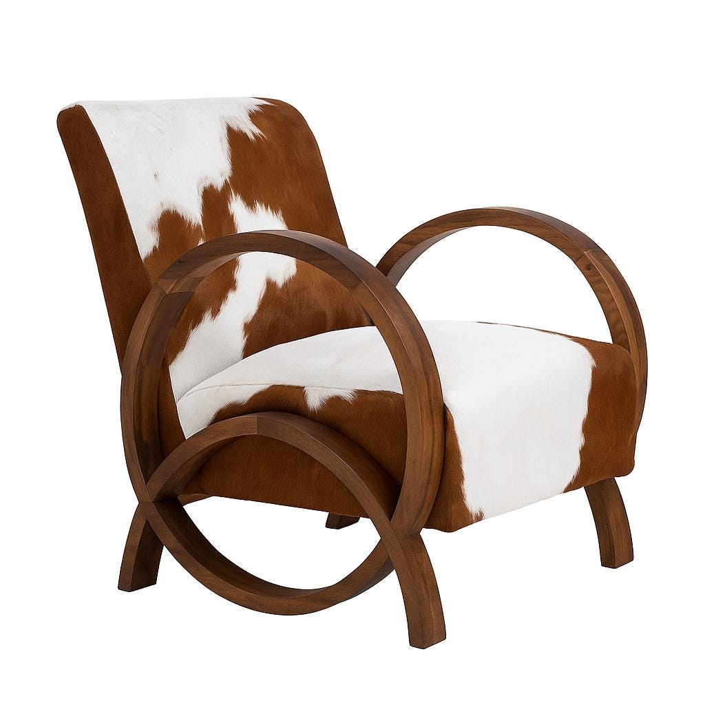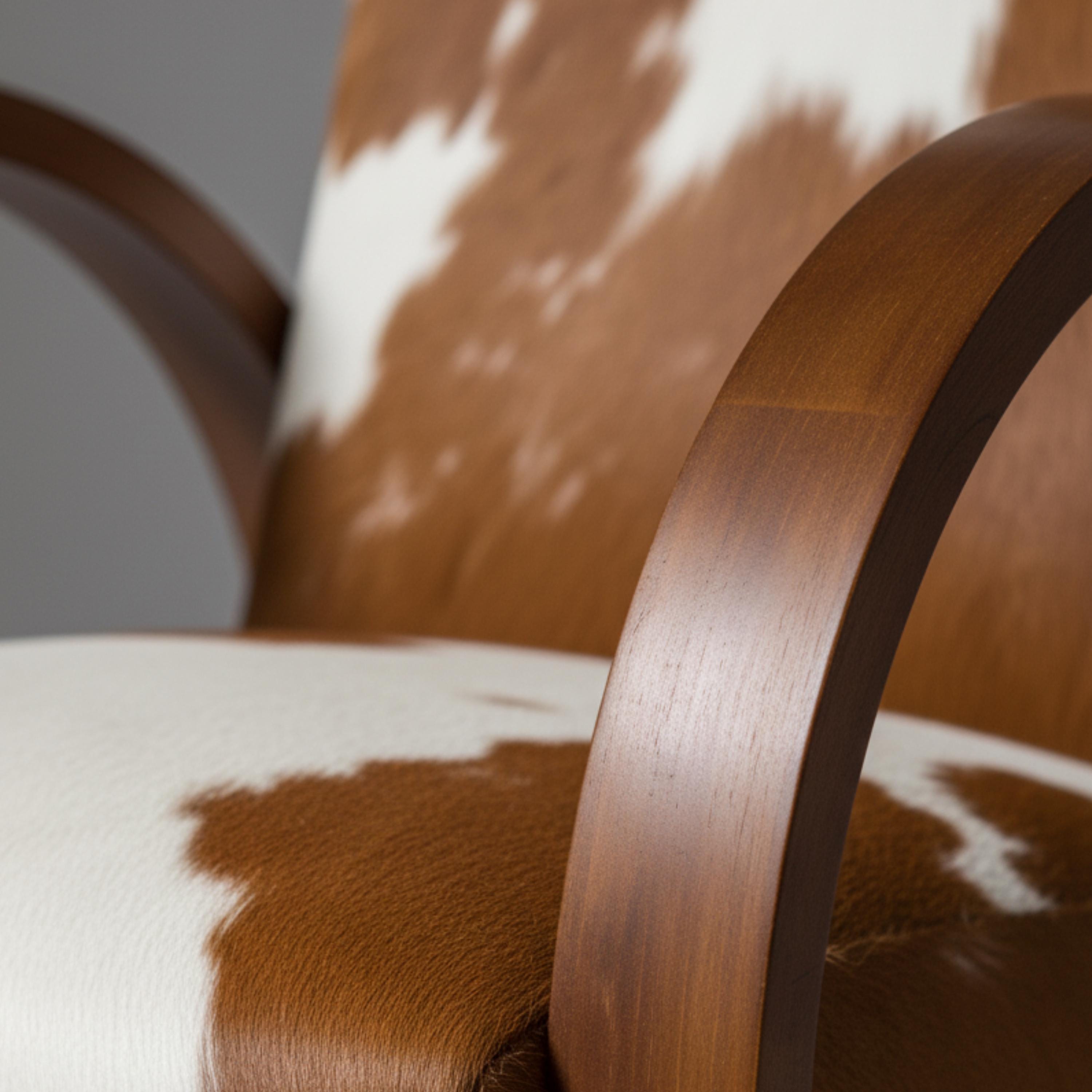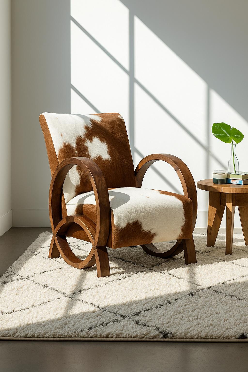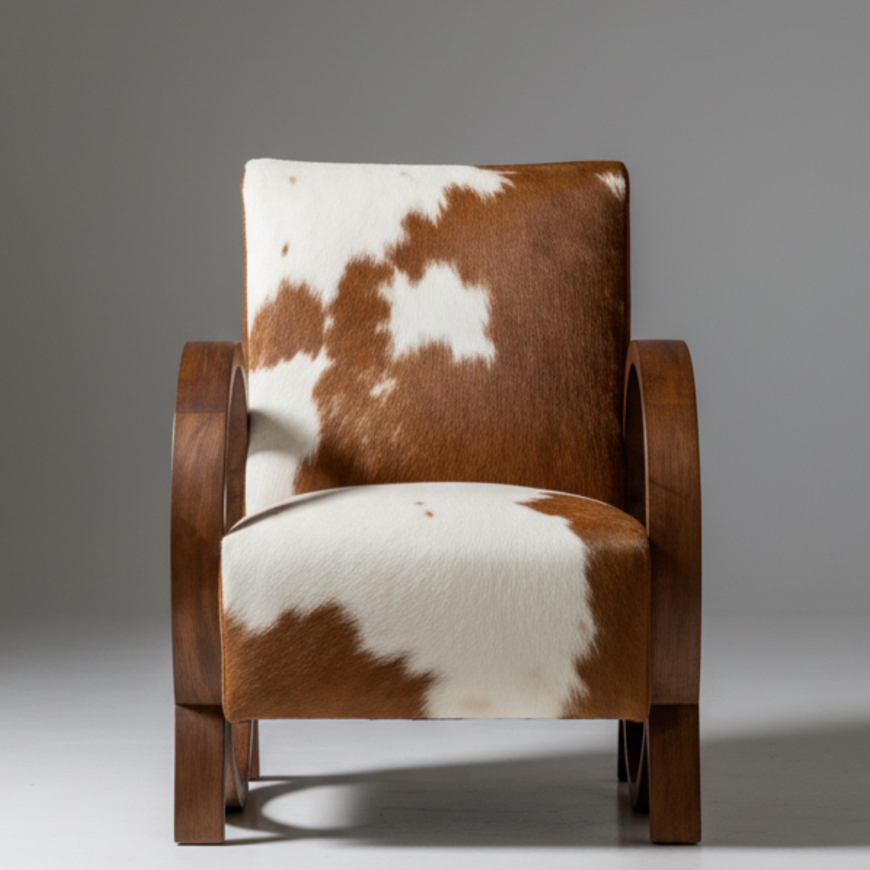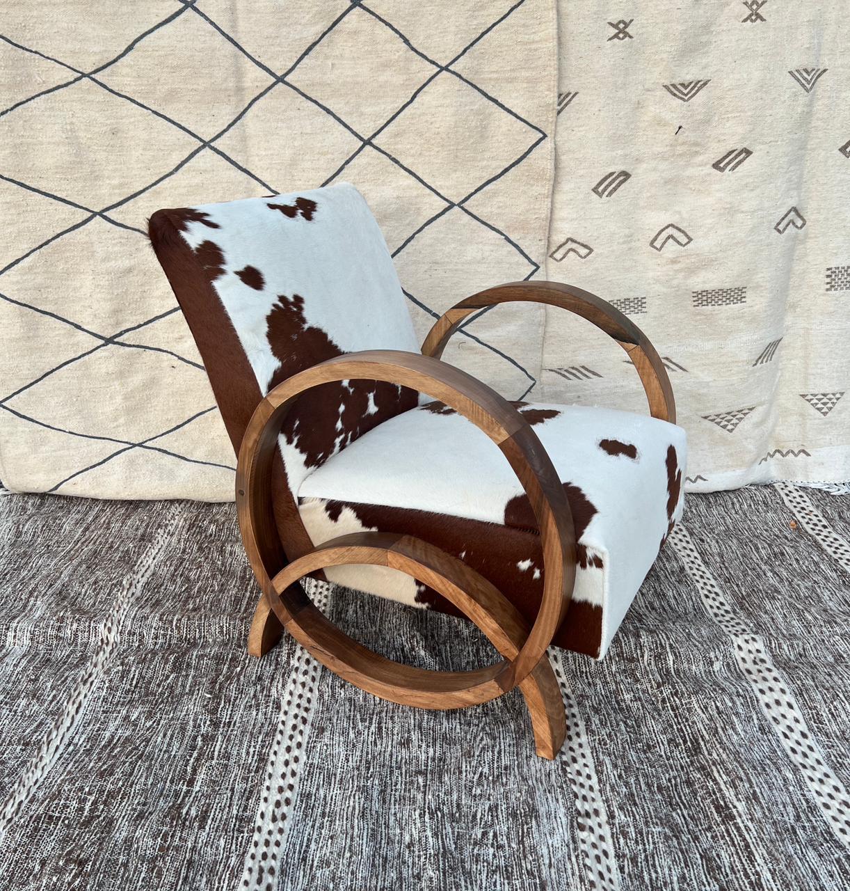 Handmade Cowhide Armchair – Walnut Wood, Moroccan Boho Lounge Chair