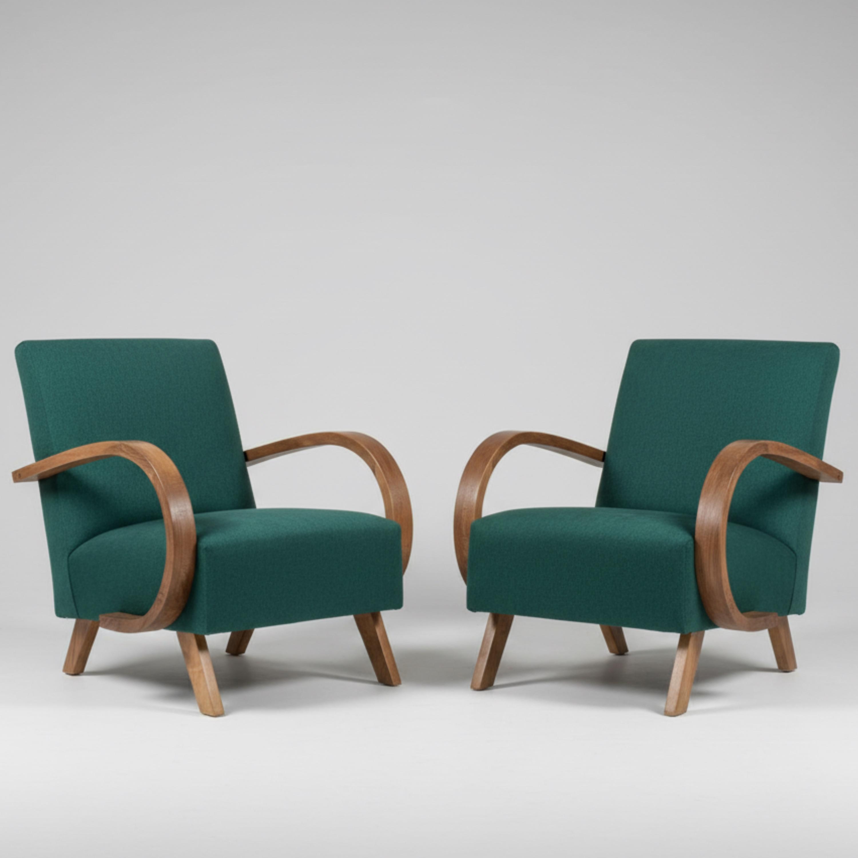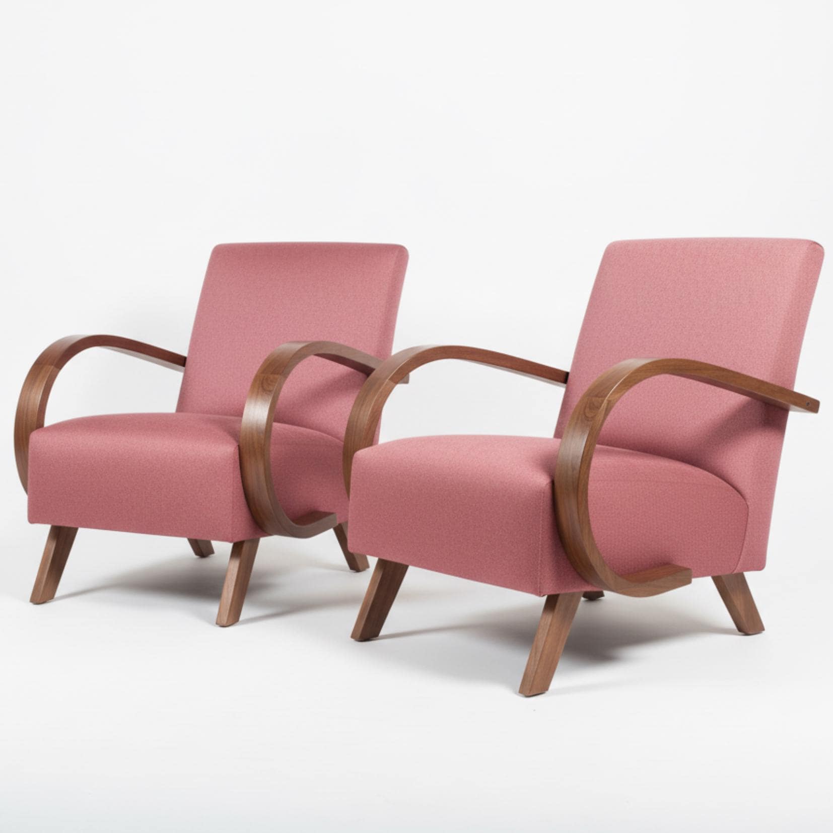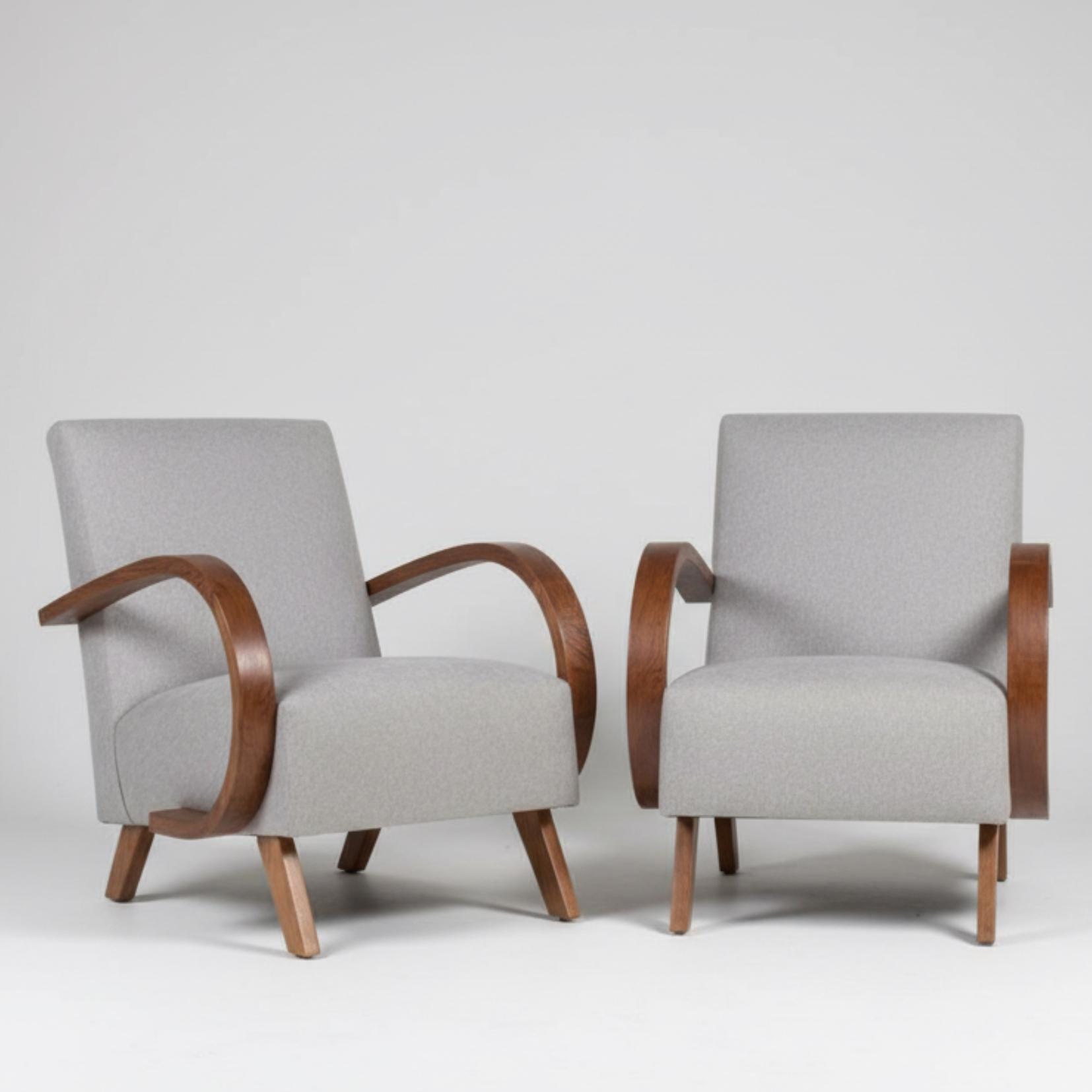 Handmade Moroccan Cowhide & Walnut Armchairs – Mid-Century Modern Pair X2