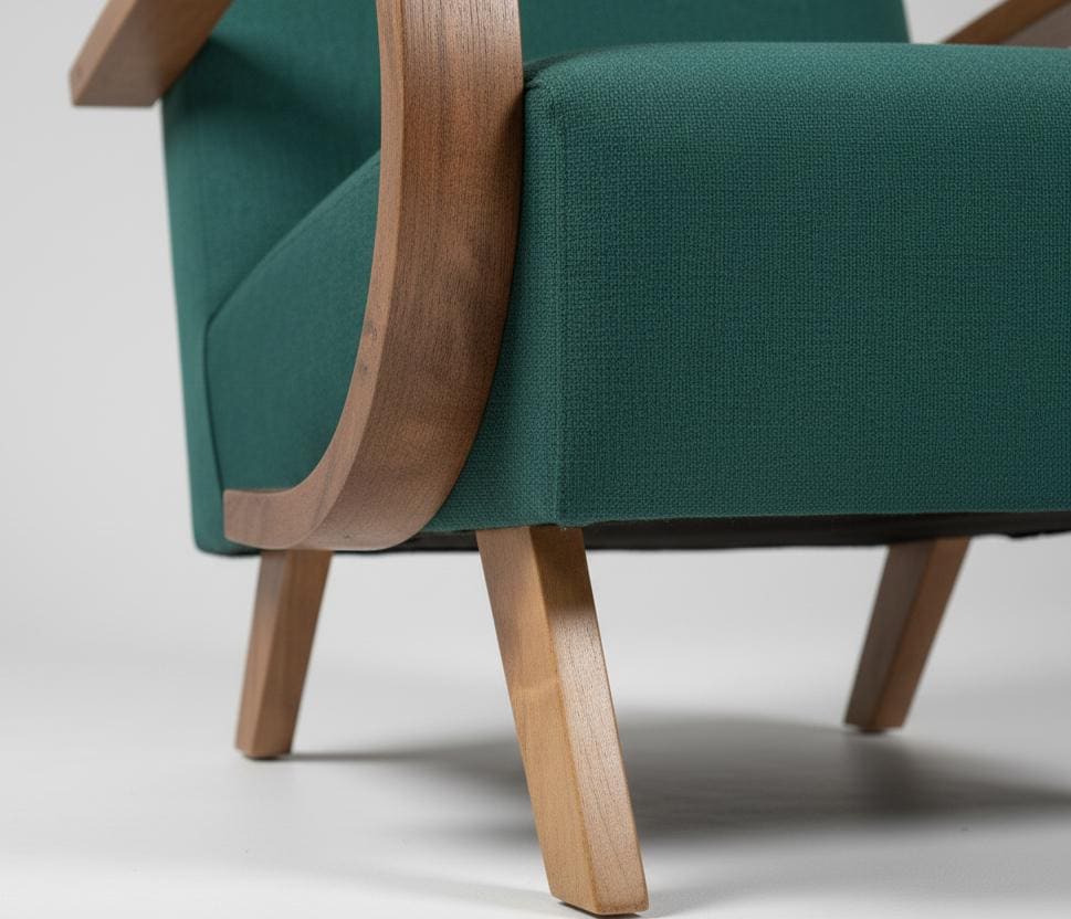 Solid Moroccan wood, handwoven wool fabric, natural finishes