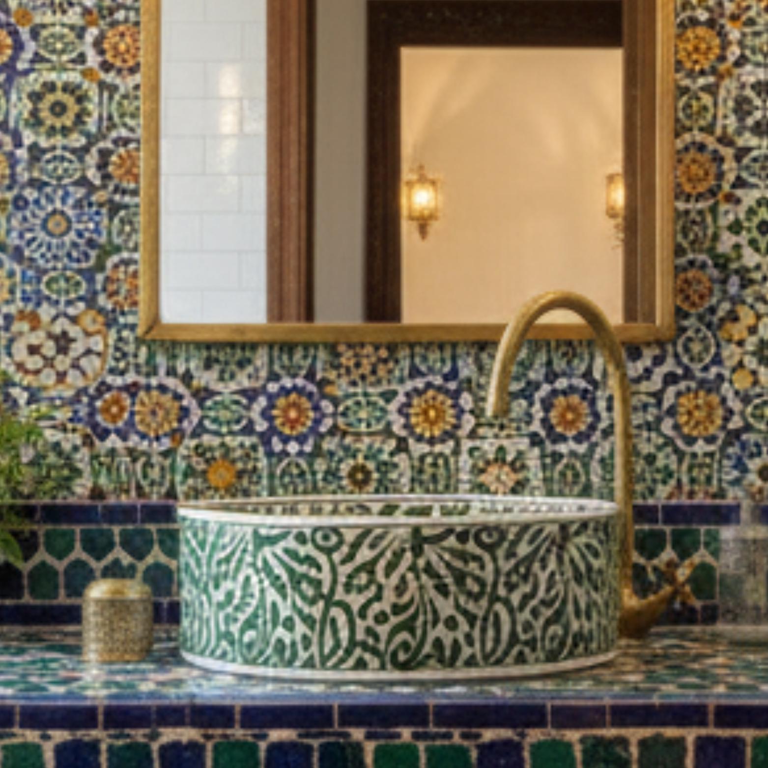 Bring a touch of Moroccan elegance to your bathroom with this stunning handcrafted ceramic sink. Featuring intricate blue and white patterns, this basin is paired with a vintage-style brass faucet for a perfect blend of artistry and functionality. Each piece is carefully made by skilled artisans, ensuring unique quality and timeless beauty.
