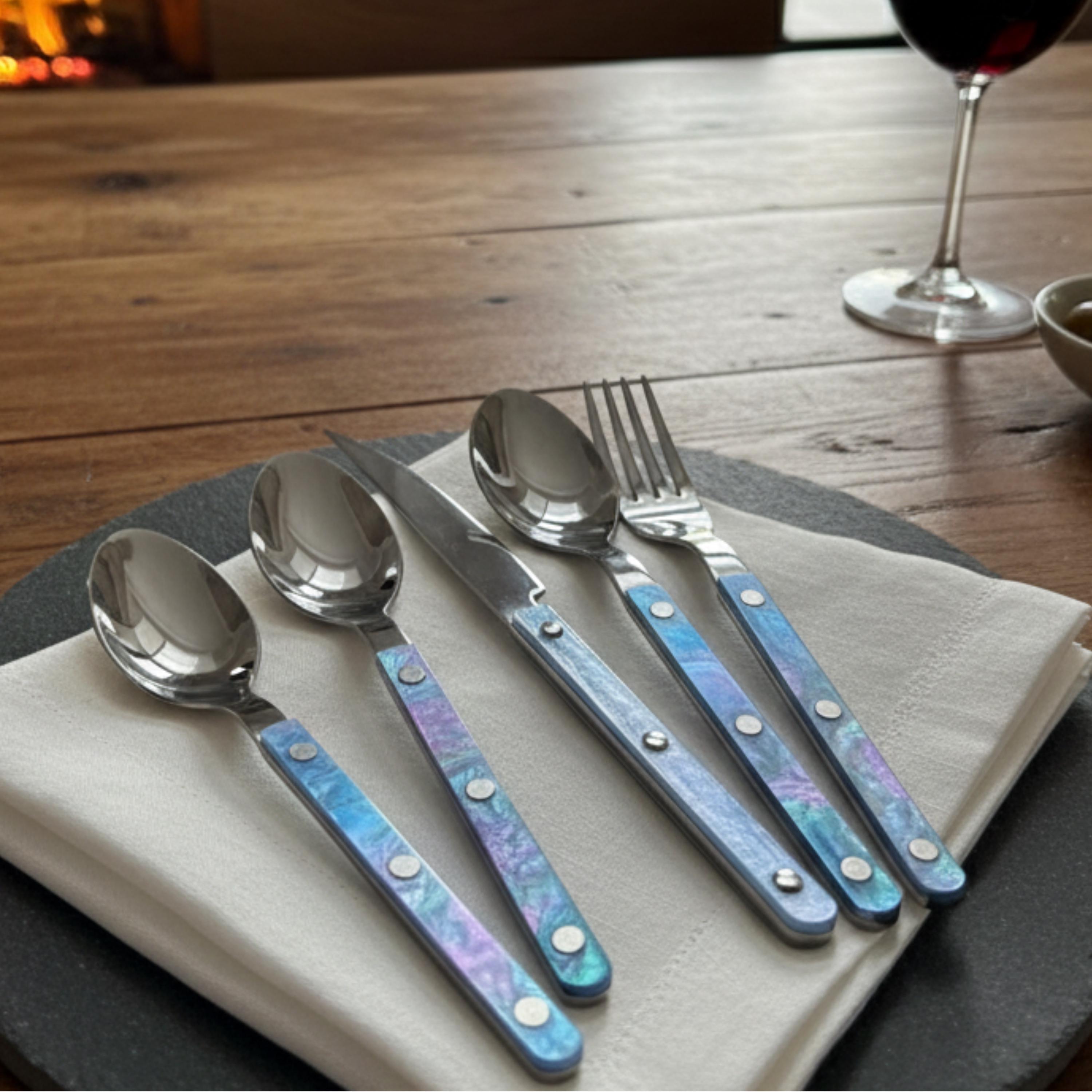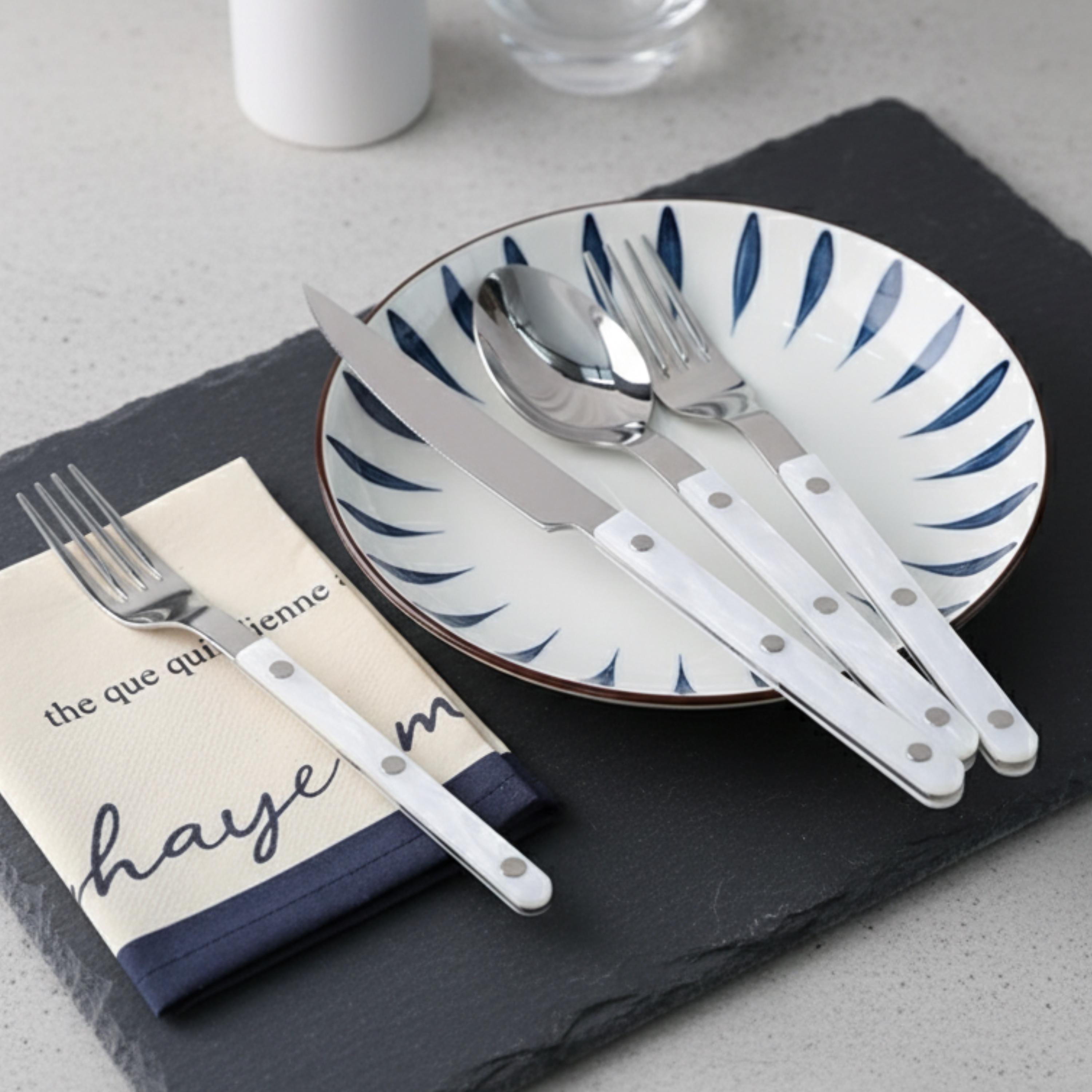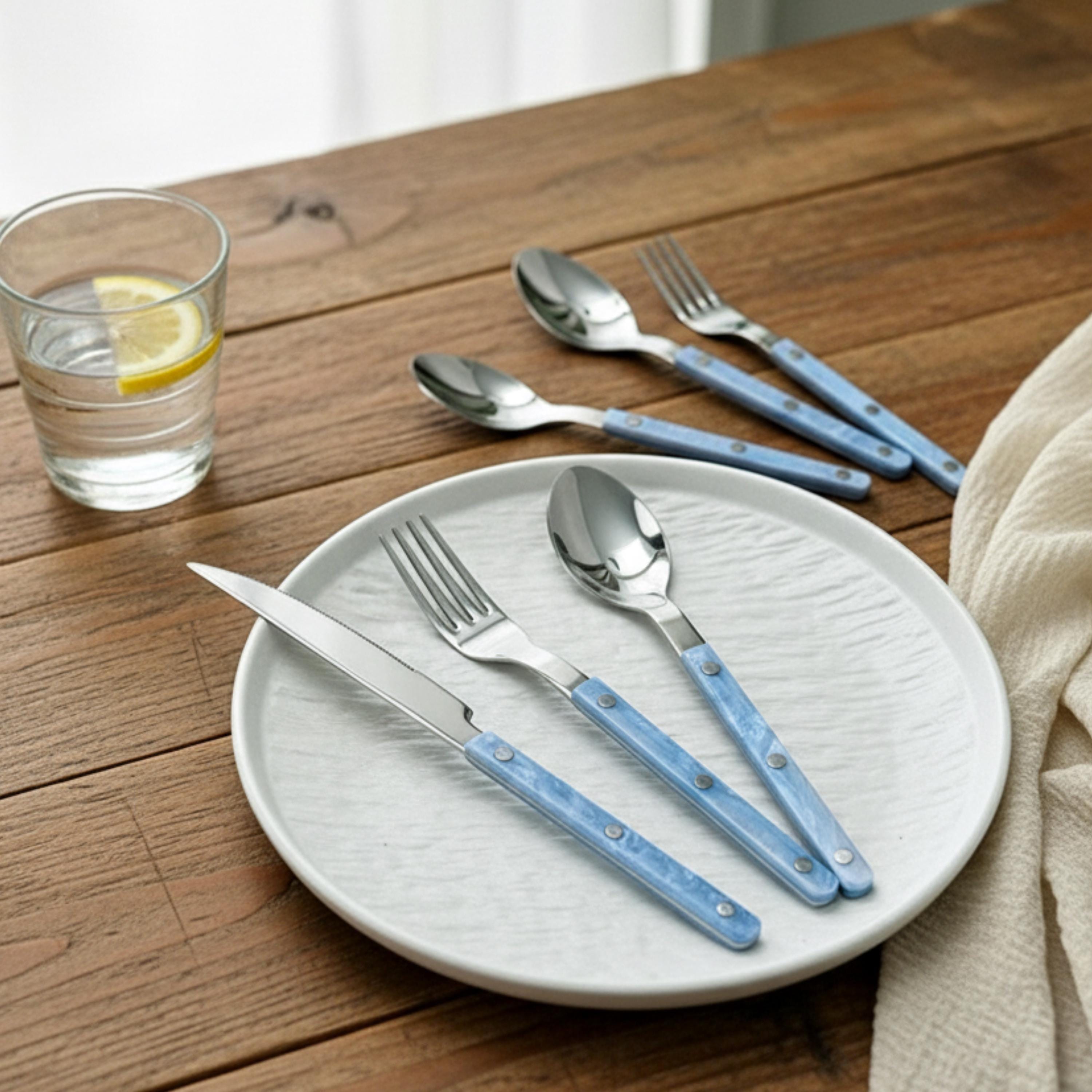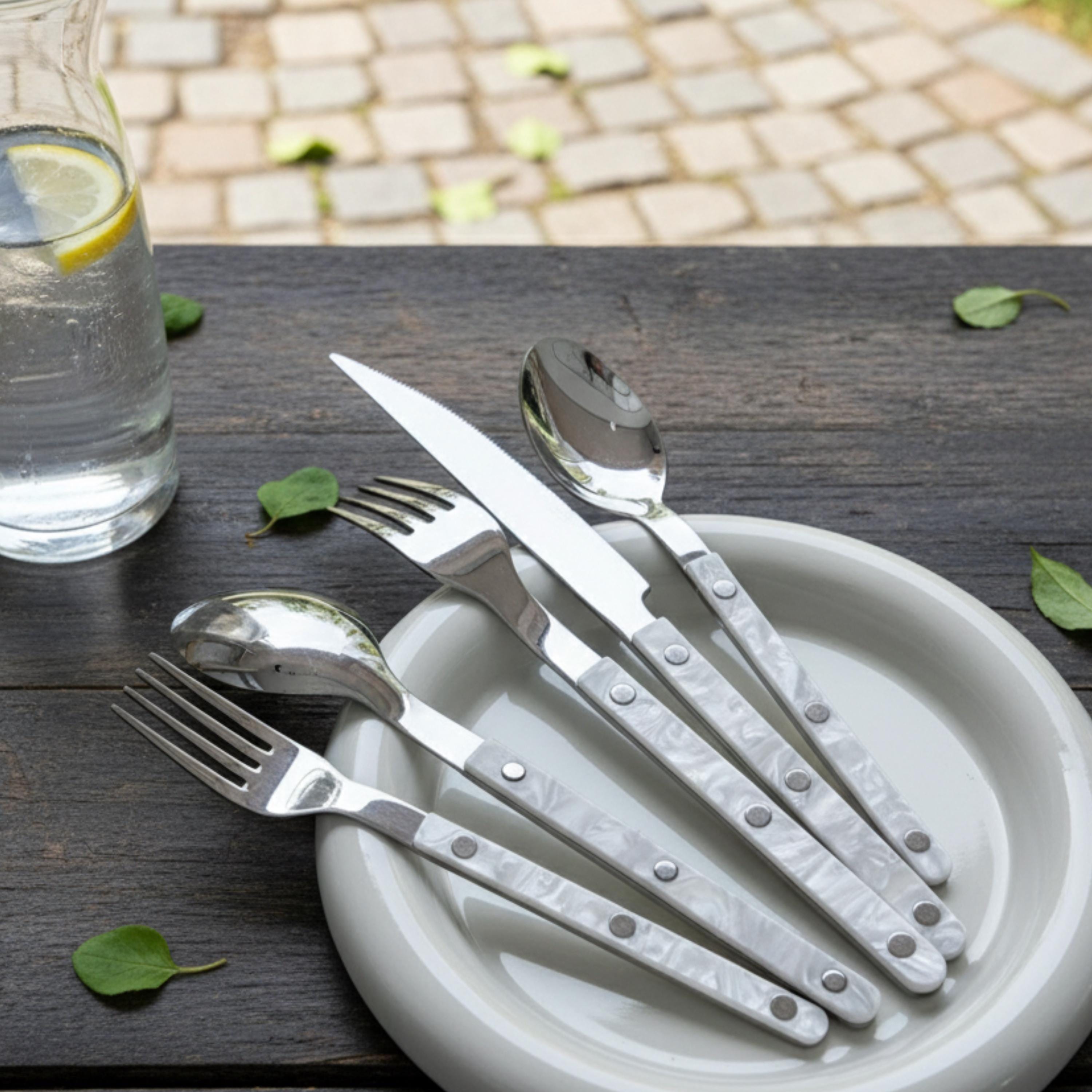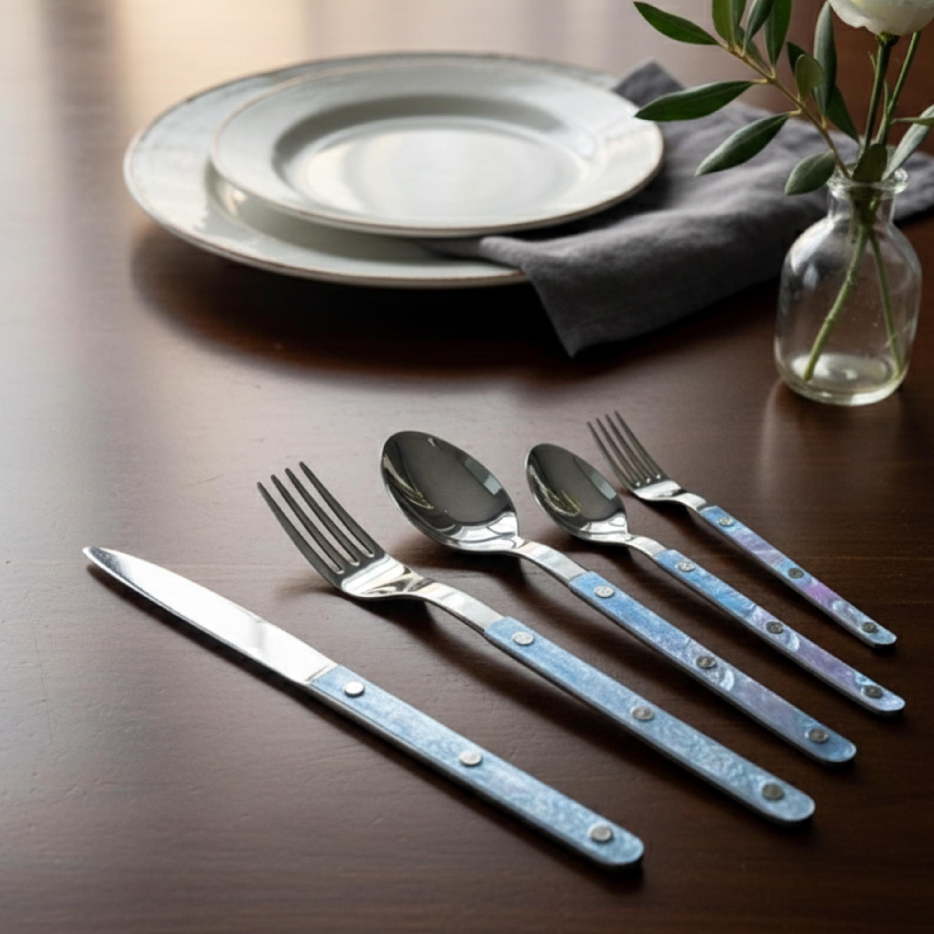 Set of 10 Pcs Modern Nebula Cutlery, Bistrot Style Rivet Flatware Set