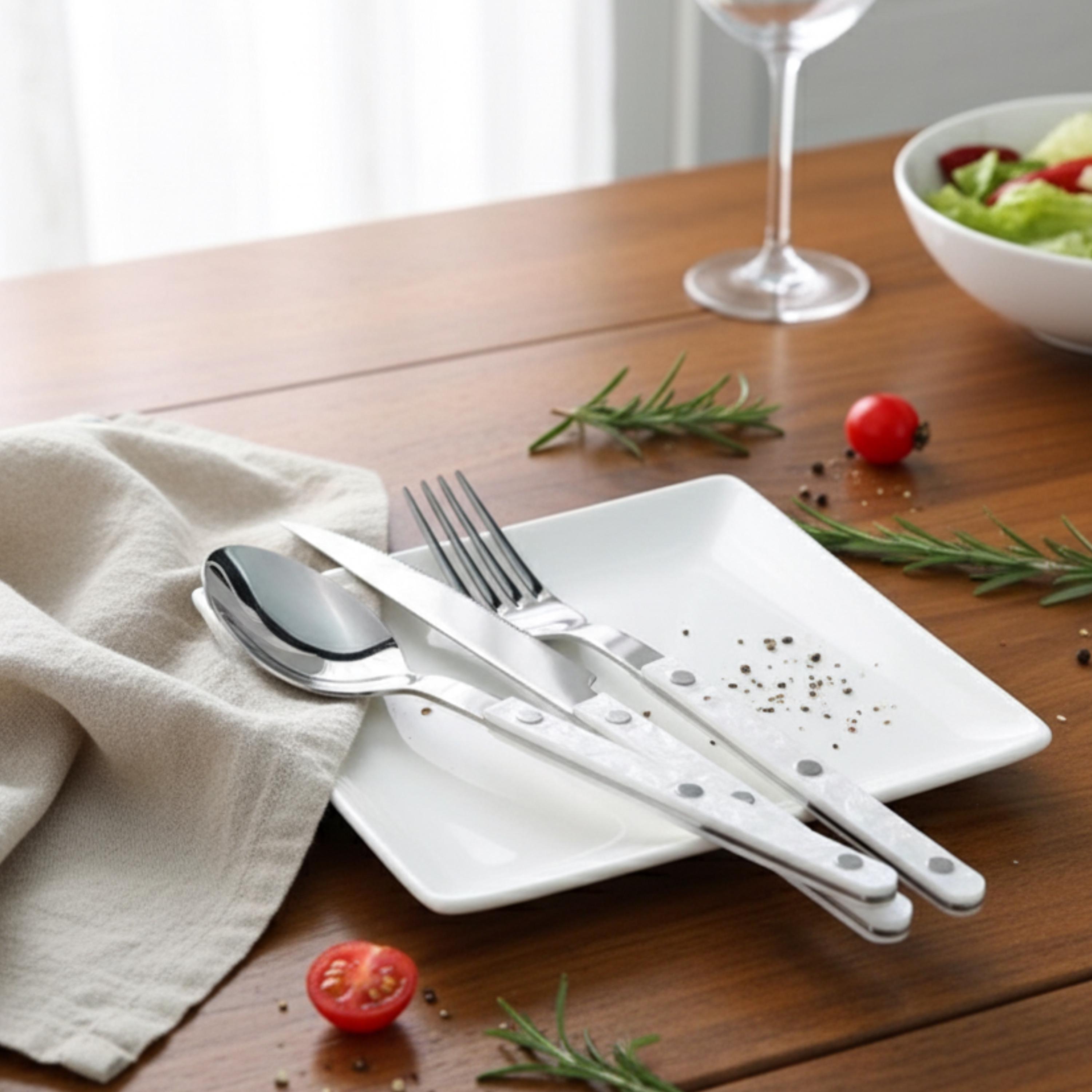 Each set includes 2 dinner forks, 2 salad forks, 2 dinner knives, 2 teaspoons, and 2 tablespoons, making it a complete flatware solution for your household. Whether you’re hosting a dinner party or simply enjoying a meal with your family, this flatware set is sure to impress.