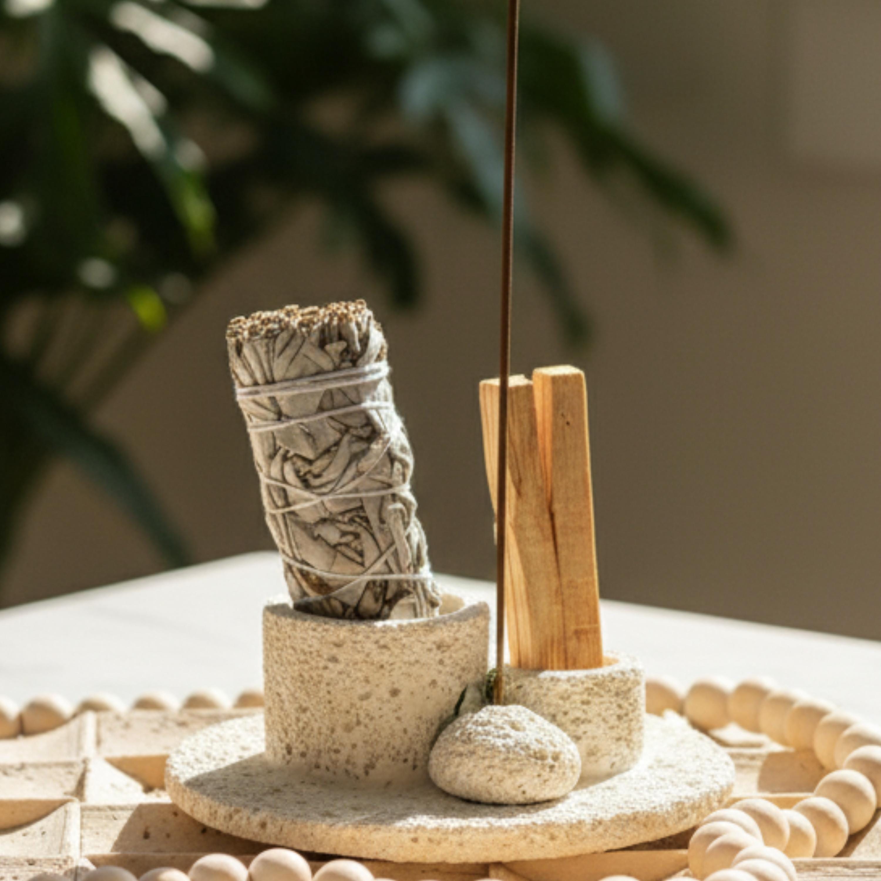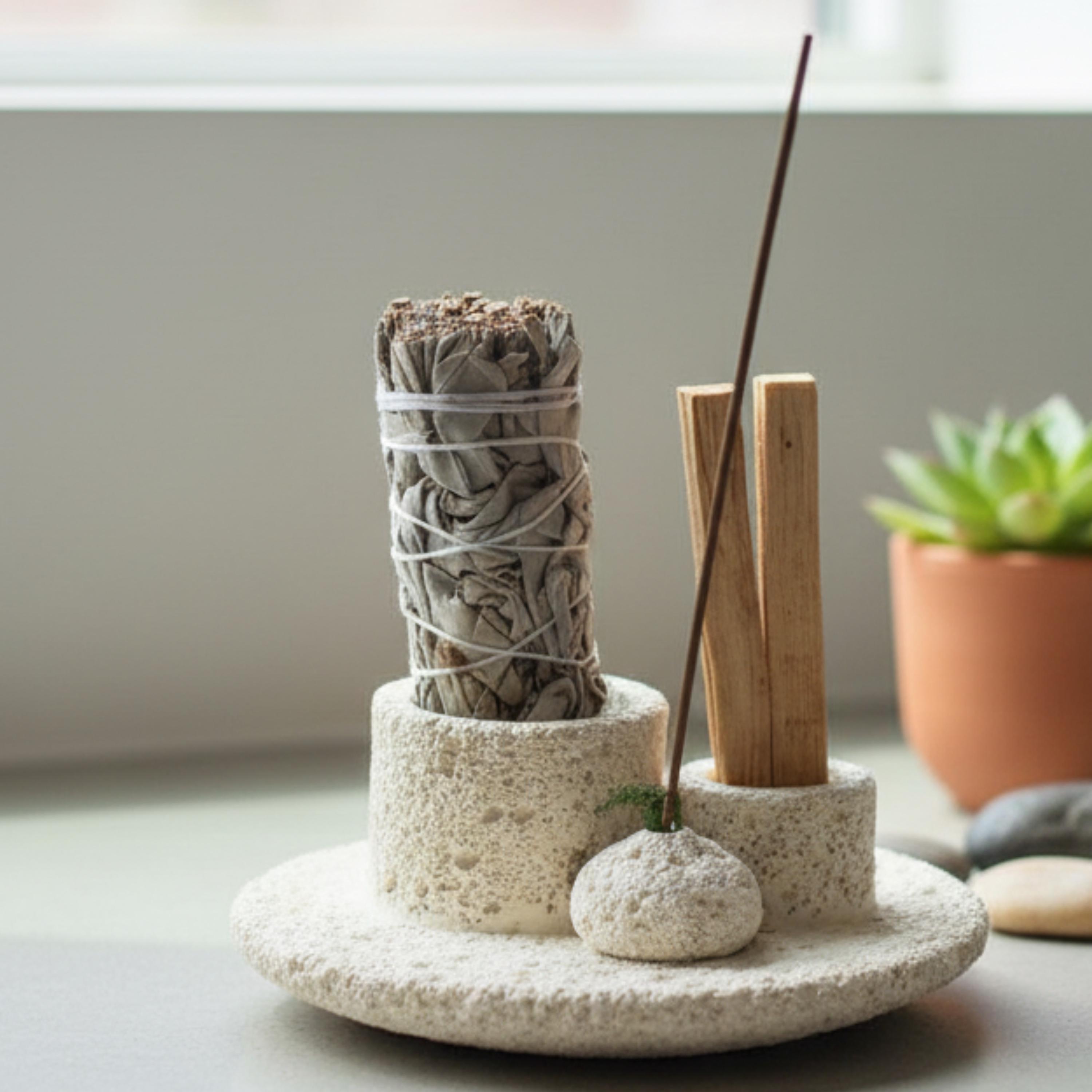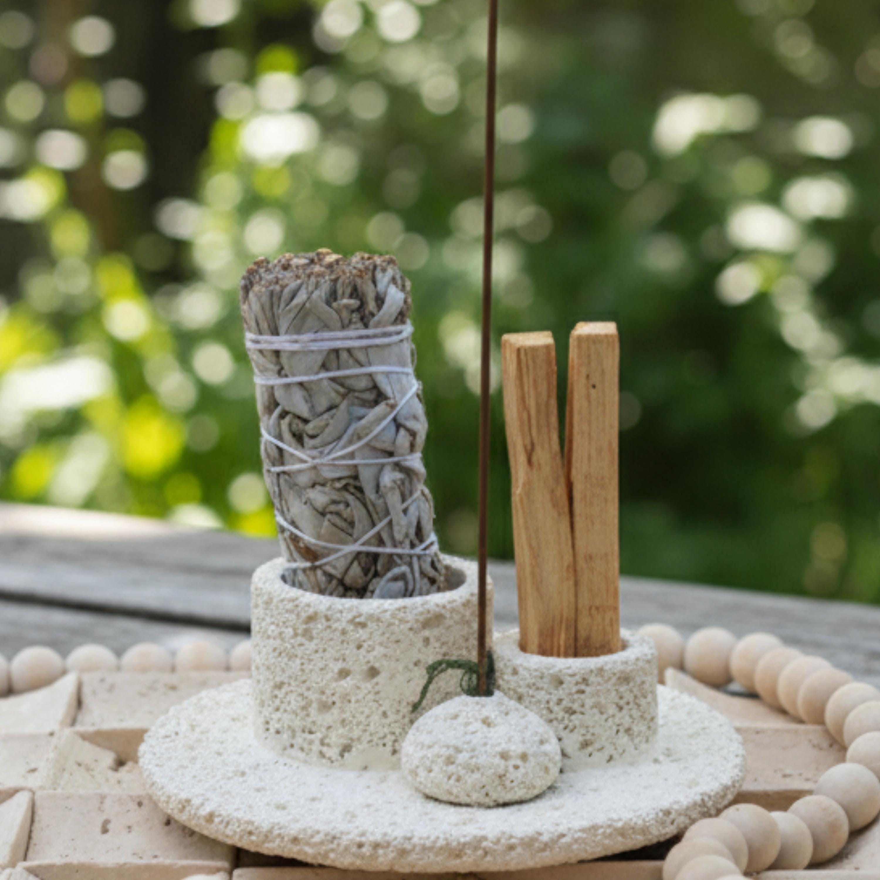 Rustic Nordic All-in-One Incense, Sage, Candle & Palo Santo Holder – Multi-Purpose Aromatherapy Burner