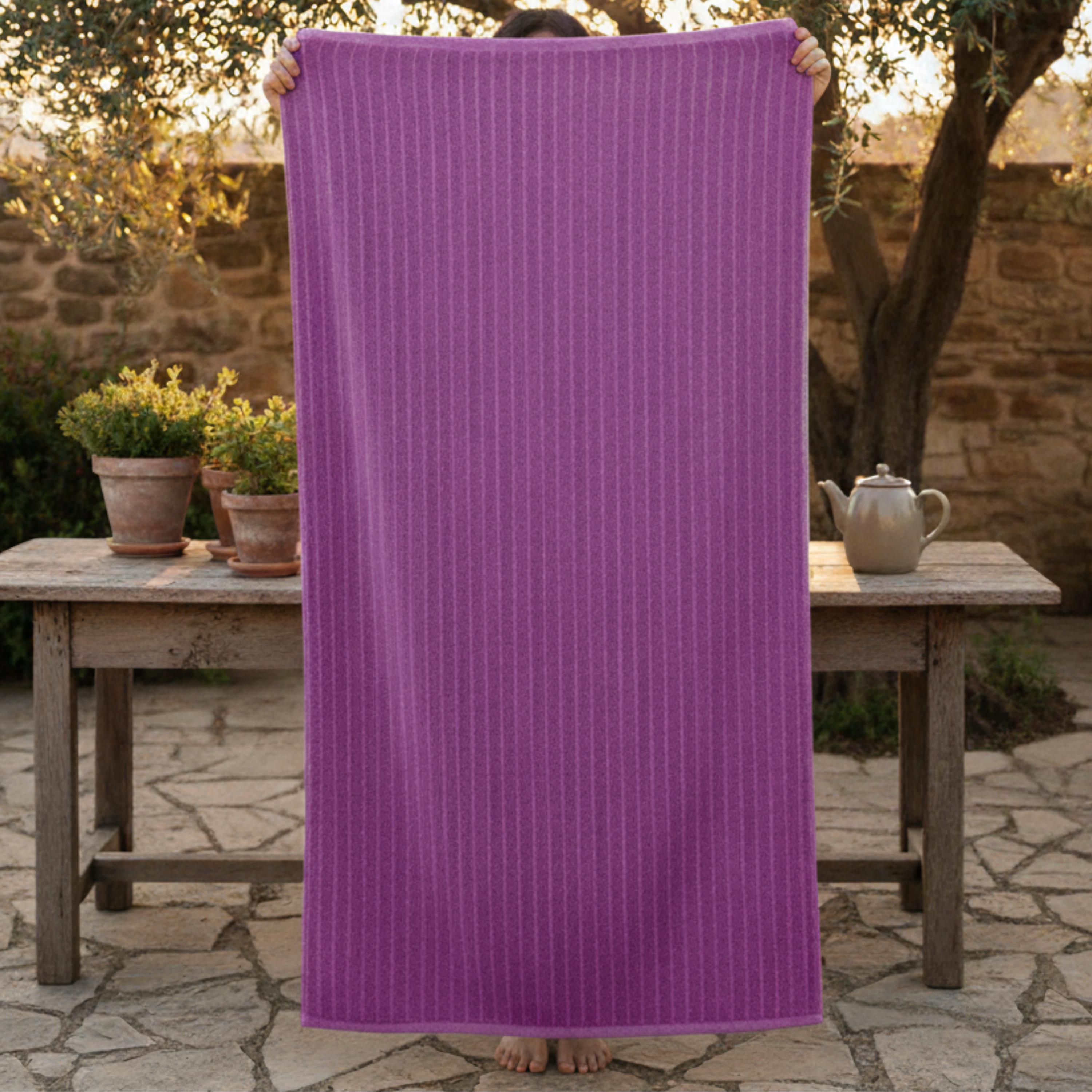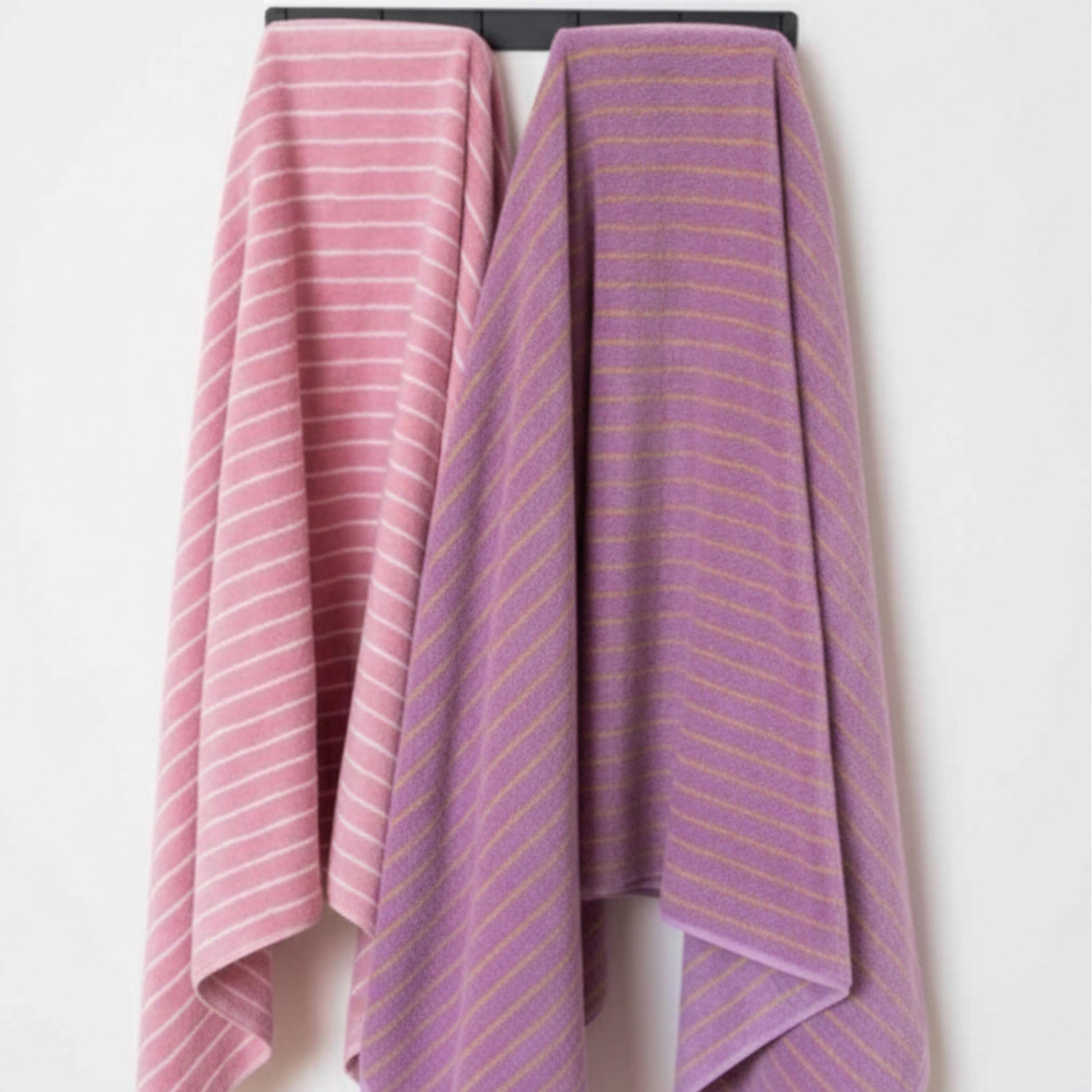 Wrap yourself in luxury with this ultra-soft, absorbent bath towel featuring a stylish retro stripe design. Made from 100% long-staple combed cotton, this towel is gentle on your skin and environmentally friendly. Perfect for your bathroom, gym, or beach days.