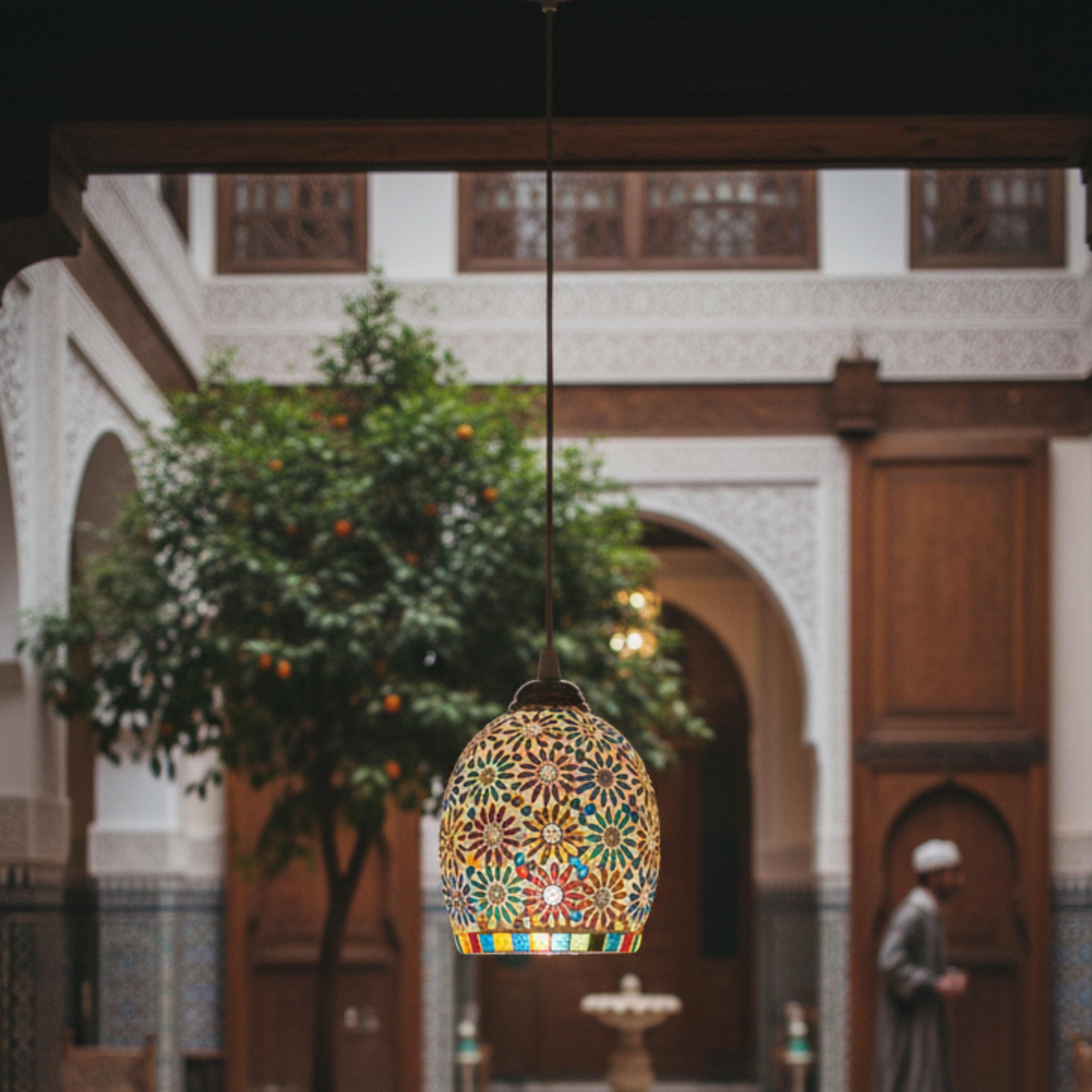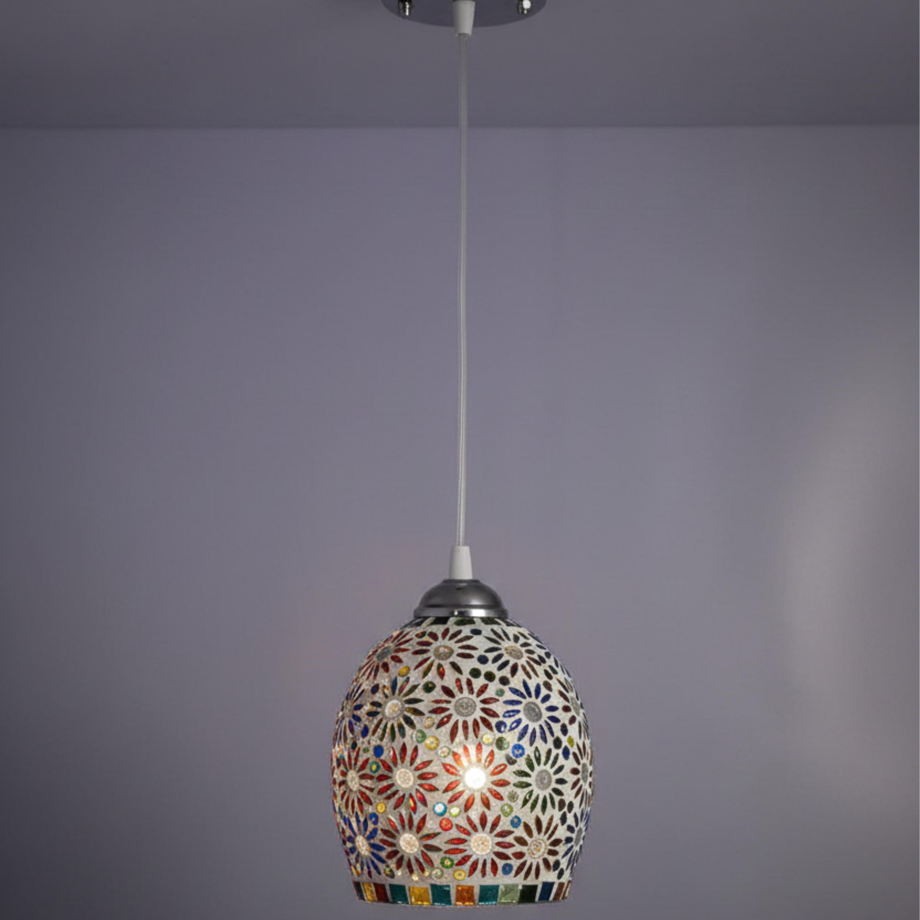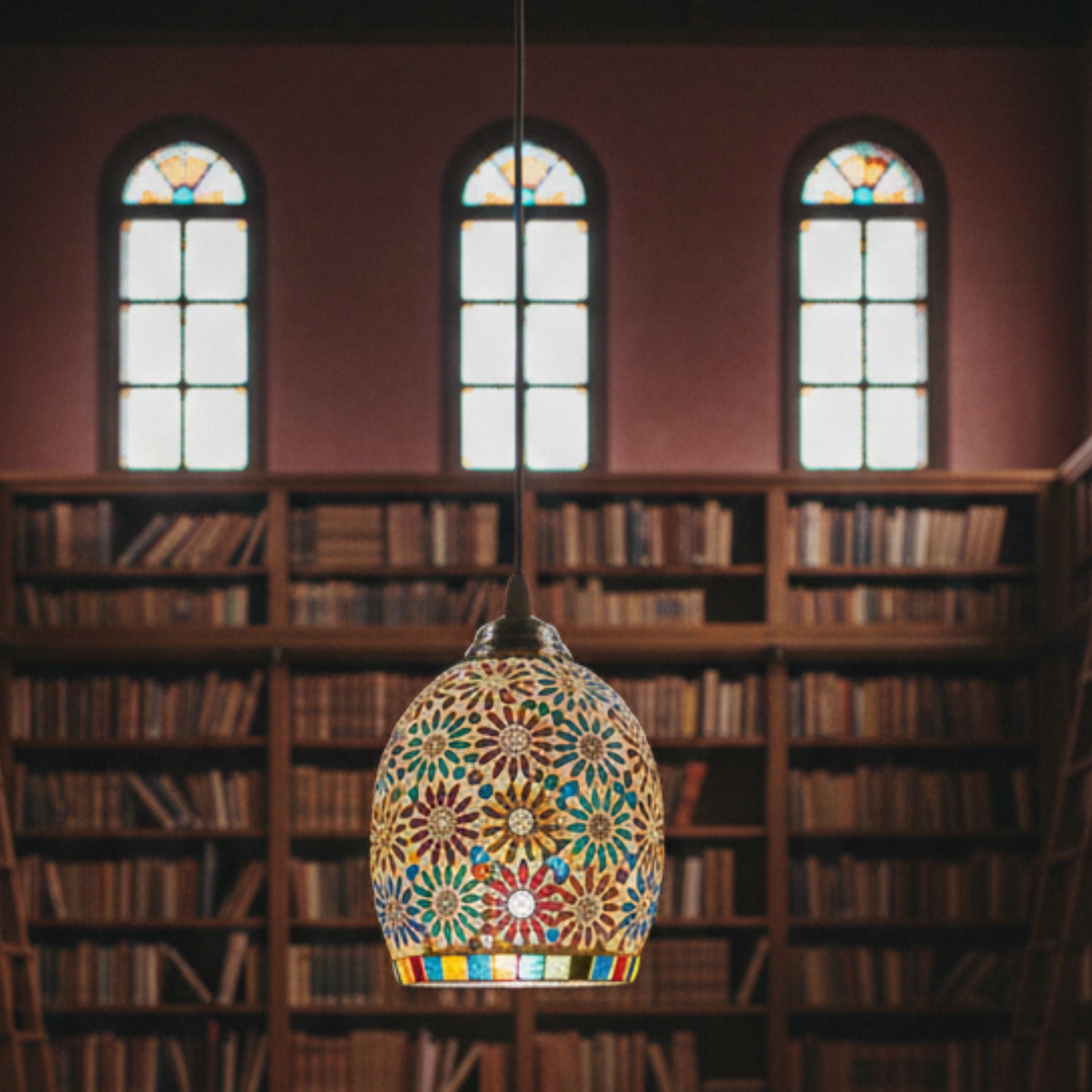Mosaic Glass Pendant Light – Handmade Hanging Ceiling Lamp for Boho, Moroccan, or Modern Decor