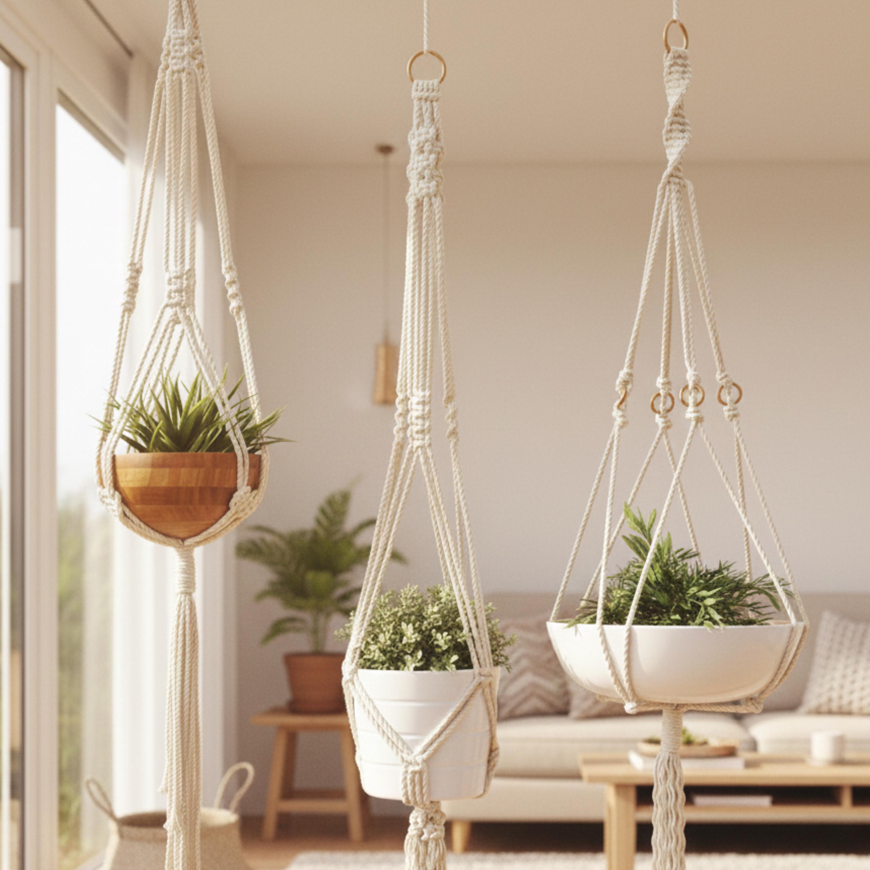 Handmade Macrame Plant Hanger – Boho Hanging Planter Holder, Indoor & Outdoor Decor