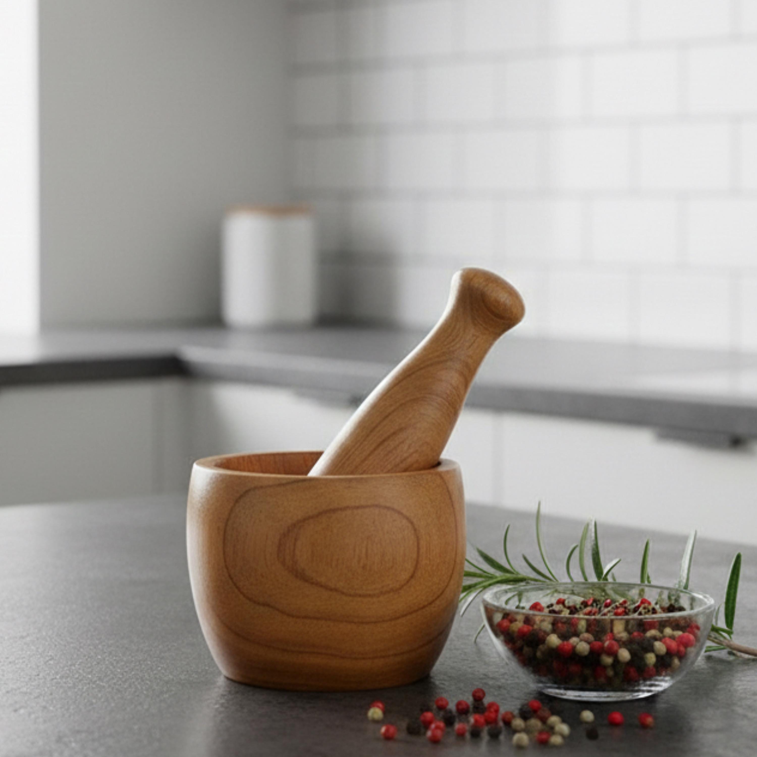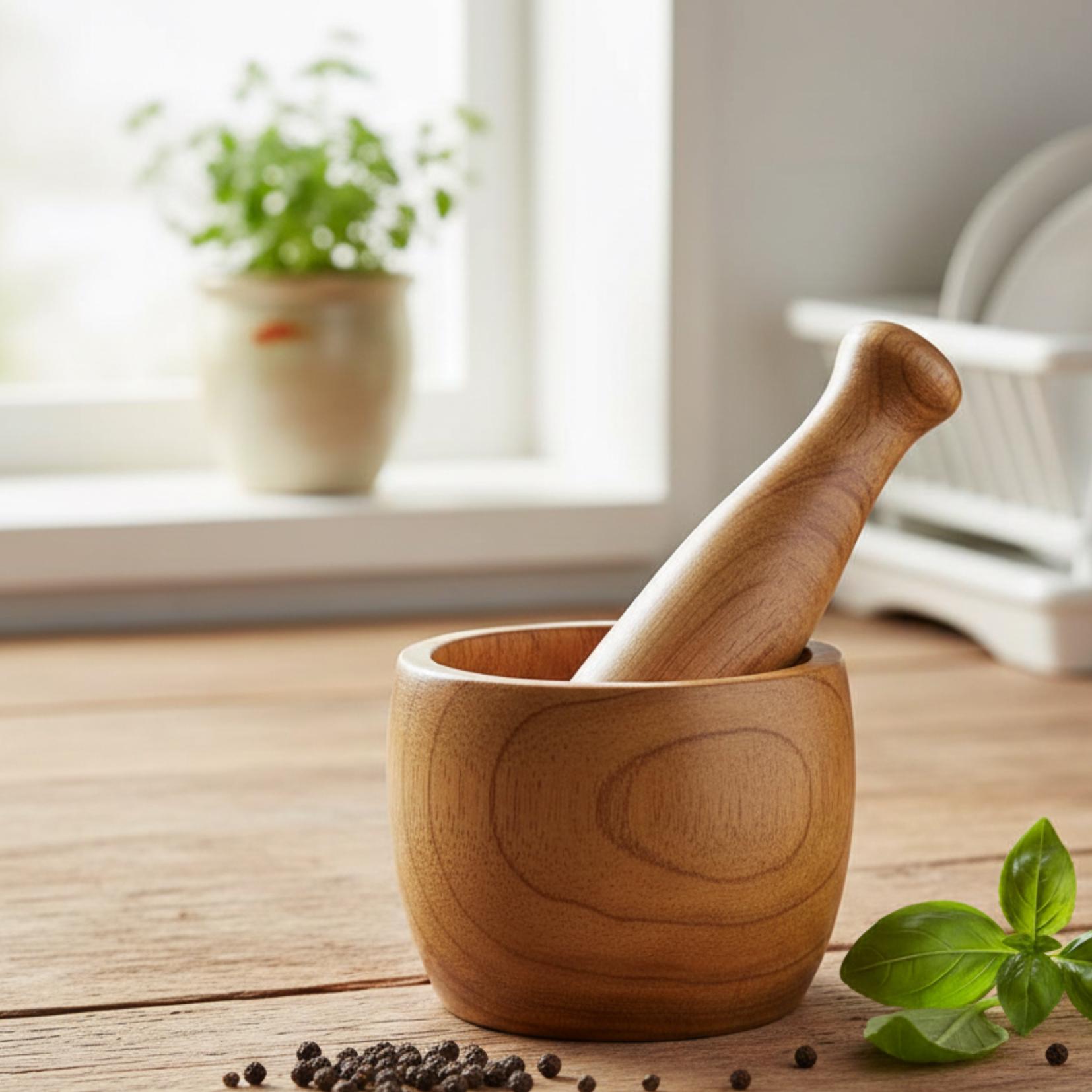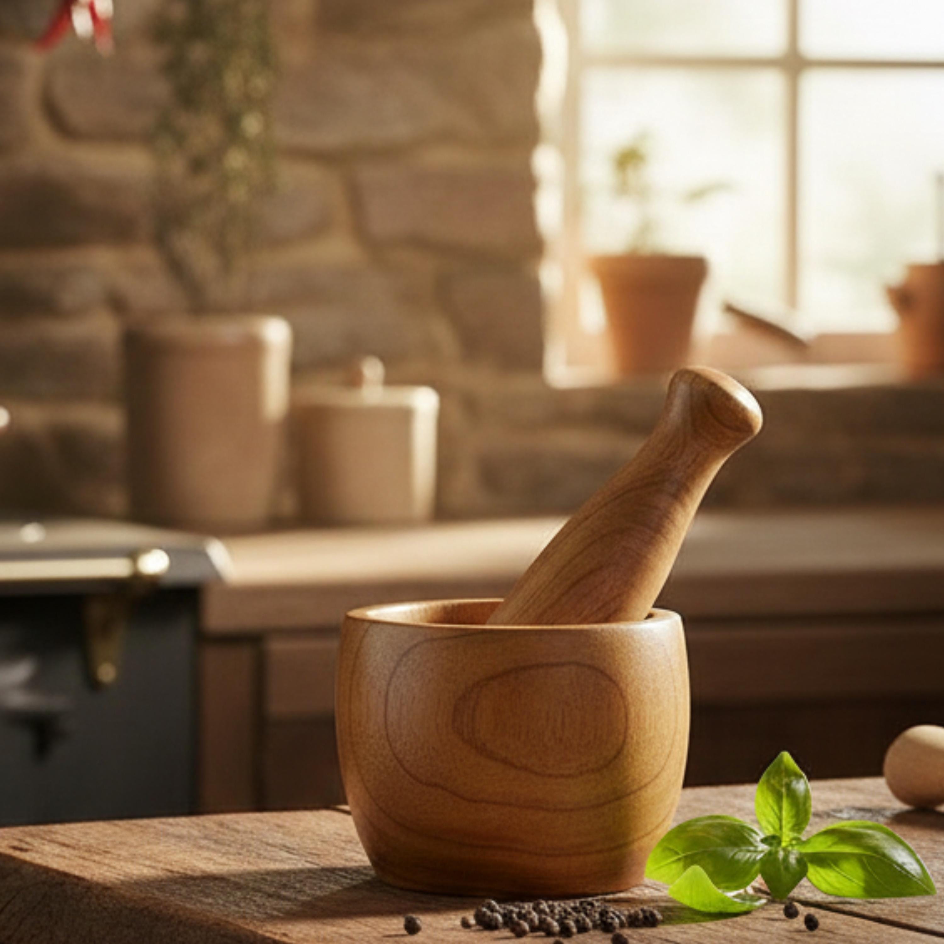 Rustic Hand-Carved Wooden Mortar and Pestle – Natural Herb Grinder from Morocco