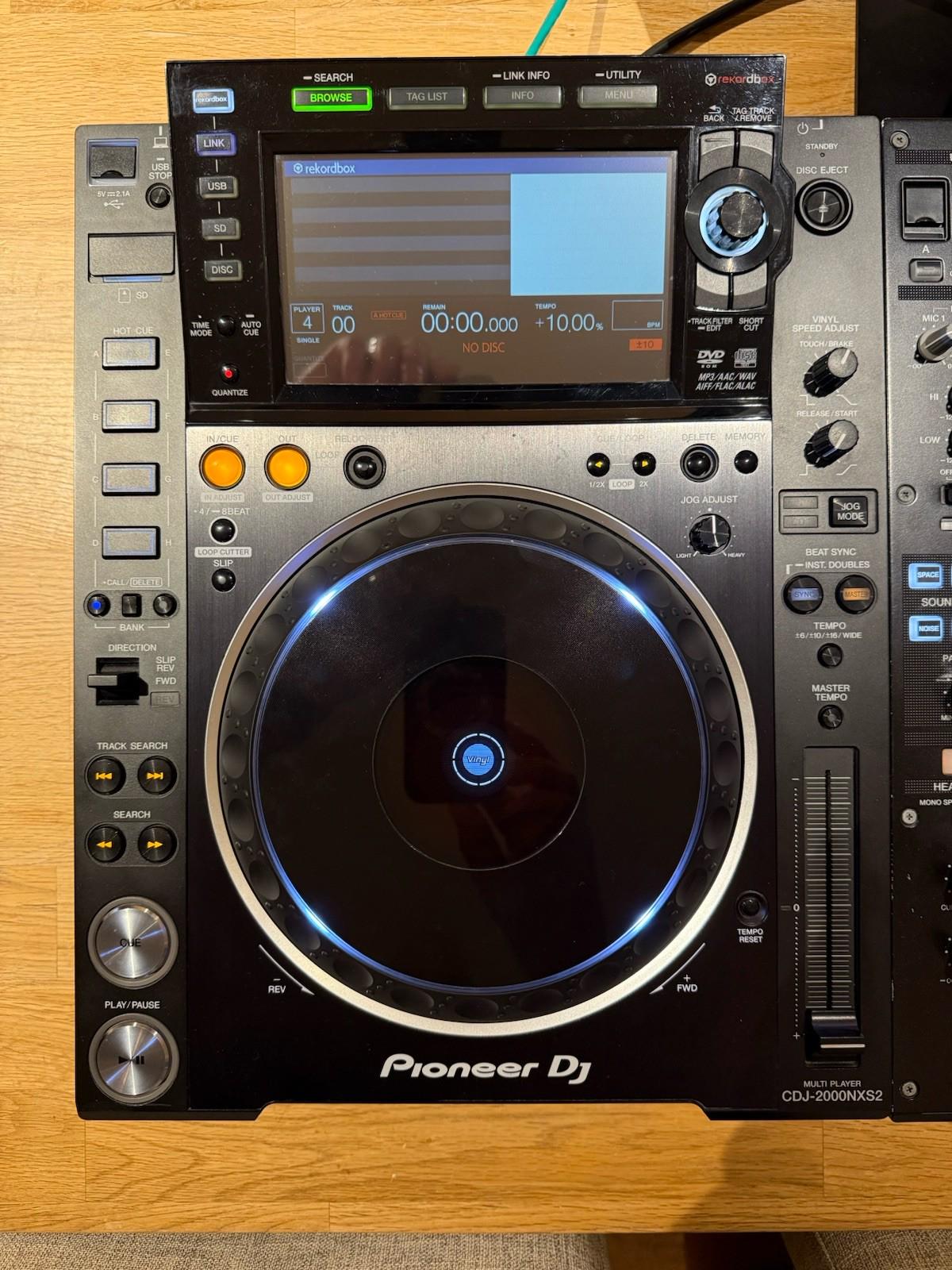 - Pair of CDJ-2000NXS2 Decks: Both decks are in great working order and cosmetically clean. One unit has two small chips on the rear casing (see photos). Includes manuals and cables (original boxes not included).